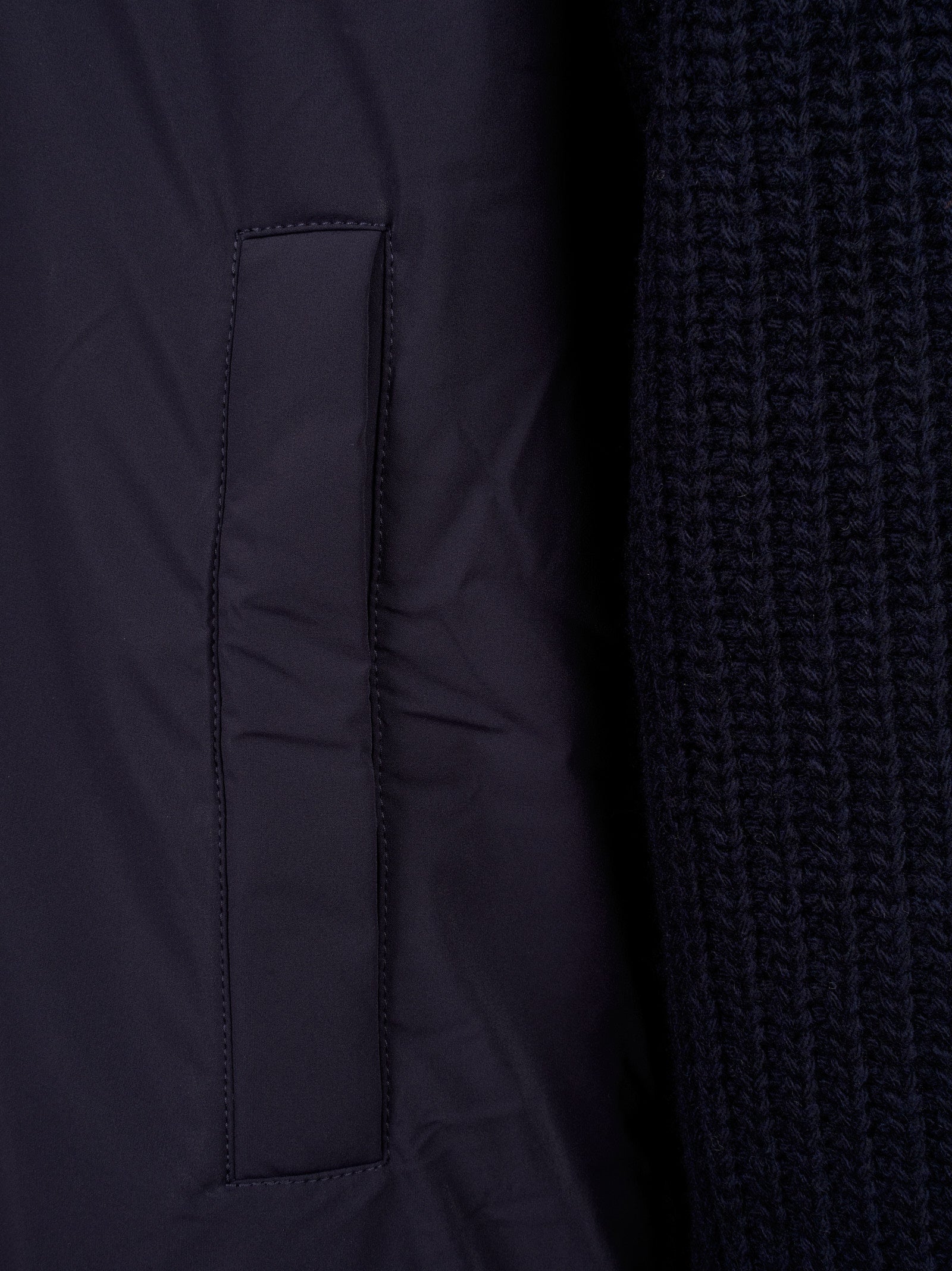 Dettaglio: Cardigan realizzato in un filato di pura lana cardata, con lavorazione punto pannocchia.