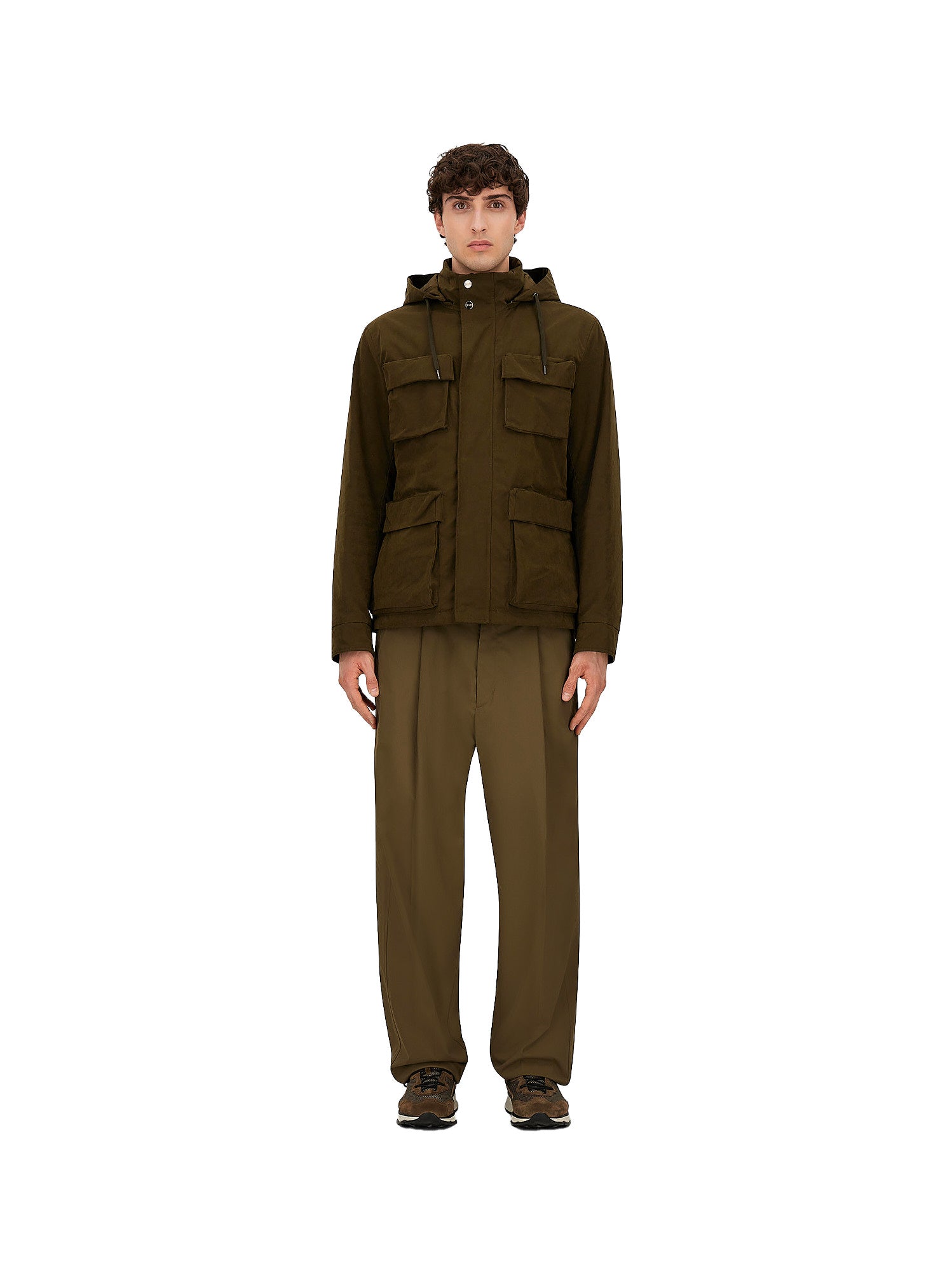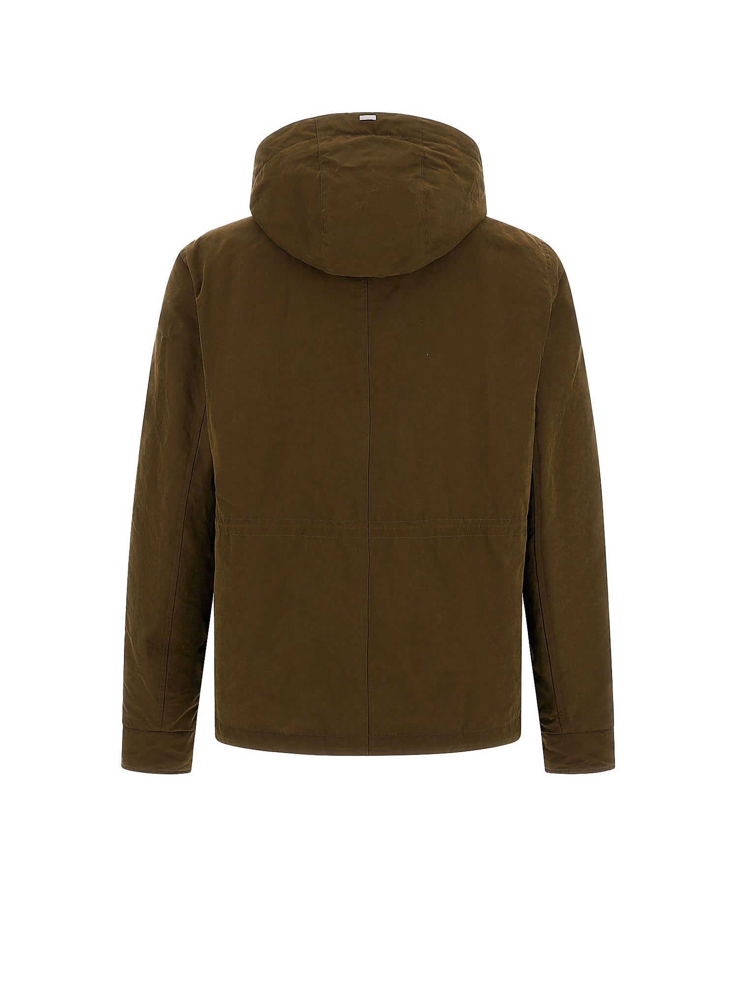 Dettaglio: Parka corto in tessuto tecnico realizzato in un pregiato blend di filati naturali e fibre tecniche, come nylon e poliestere. La miscela delle composizioni conferisce al tessuto un look accattivante che unisce la sensazione tattile del velluto e la tecnicità dello sportswear metropolitano. La ceratura finale conferisce alla texture un tocco caldo, avvolgente e affascinante.