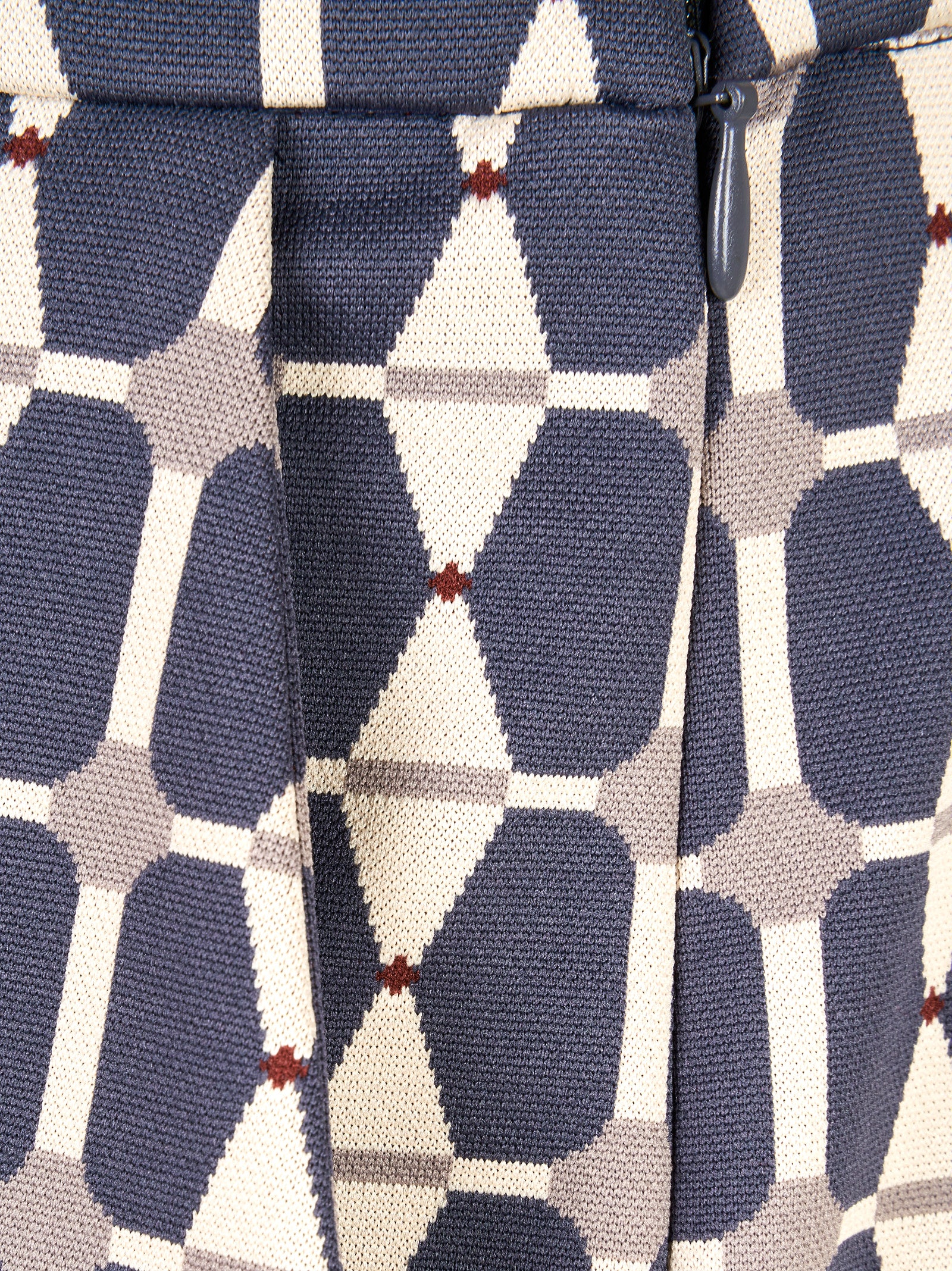 Dettaglio: Pantalone in cady leggermente sagomato sulla gamba realizzato con motivo geometrico optical