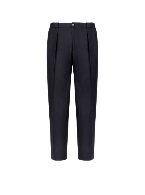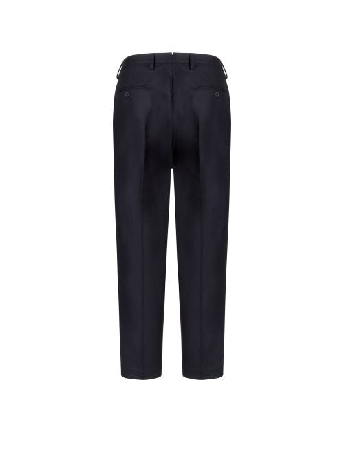 Dettaglio: Pantalone tasca america realizzato in lana con doppia pences ed inserto elastico sul cinto.