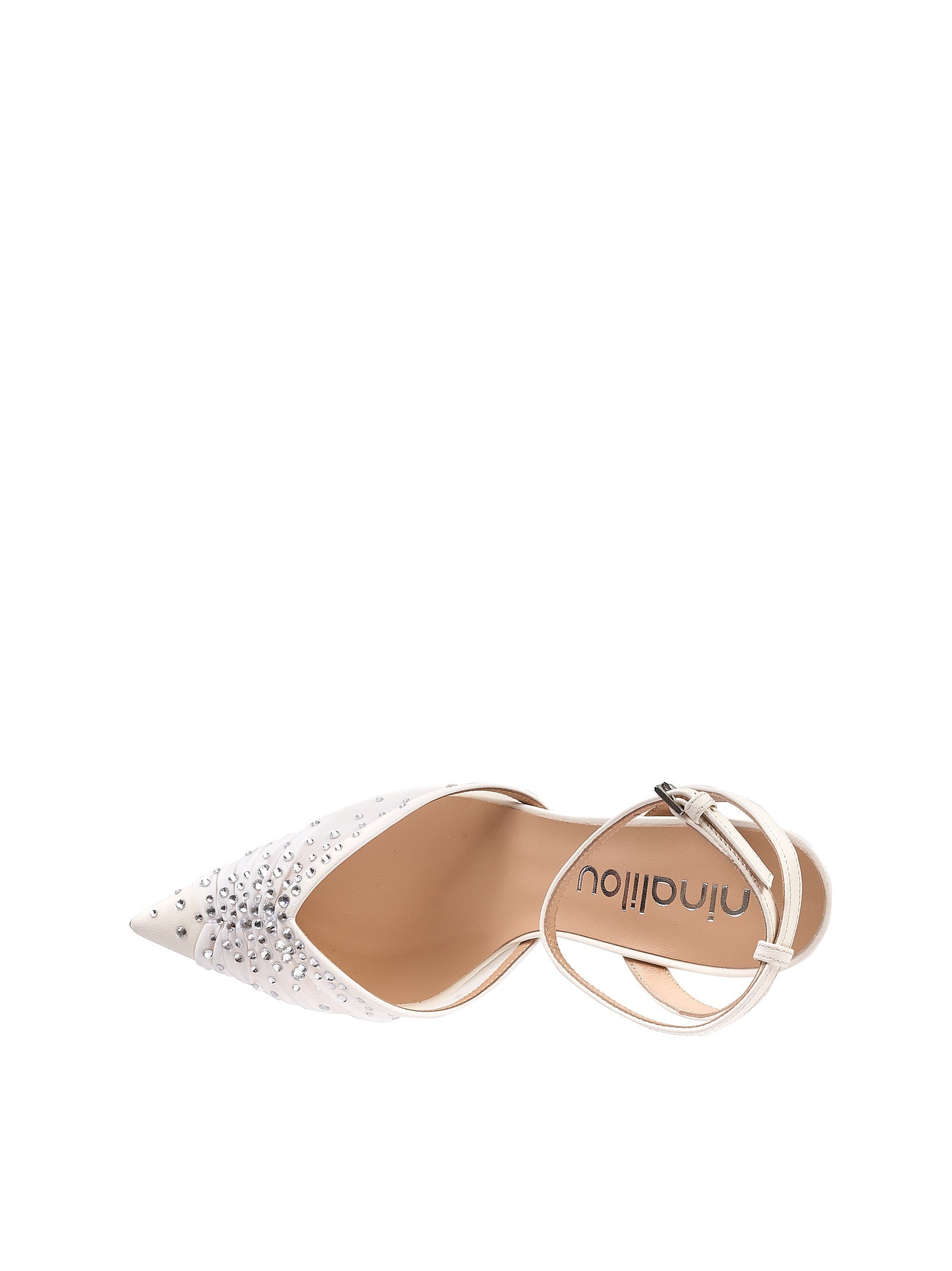 Dettaglio: Questa décolleté Ninalilou interpreta una femminilità romantica e senza tempo. La delicata lavorazione in tessuto, illuminata dagli strass, crea un raffinato gioco di trasparenze, avvolgendo il piede con grazia e leggerezza. Le linee pulite ed eleganti donano armonia alla silhouette, mentre il design complessivo esprime un’eleganza eterea e sofisticata. Un modello pensato per momenti speciali, ideale per chi desidera distinguersi con delicatezza, stile e un fascino naturalmente chic. Décolleté con cinturino alla caviglia, realizzata in tessuto e nappa con applicazione di strass. Scollo a punta. Suola in cuoio. Tacco 9,5 cm.
