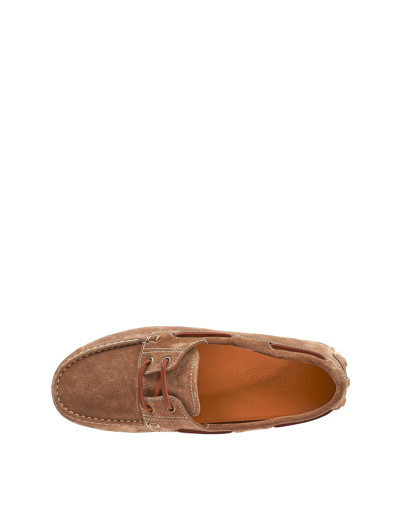 Dettaglio: Il mocassino Gommino Bubble enfatizza l'iconica suola Tod's in chiave contemporanea. Risultato di un’accurata lavorazione artigianale, è qui proposto in versione stringata, modello boat. Realizzato in raffinata pelle di vitello scamosciata, presenta una suola con inserti in gomma in versione maxi.