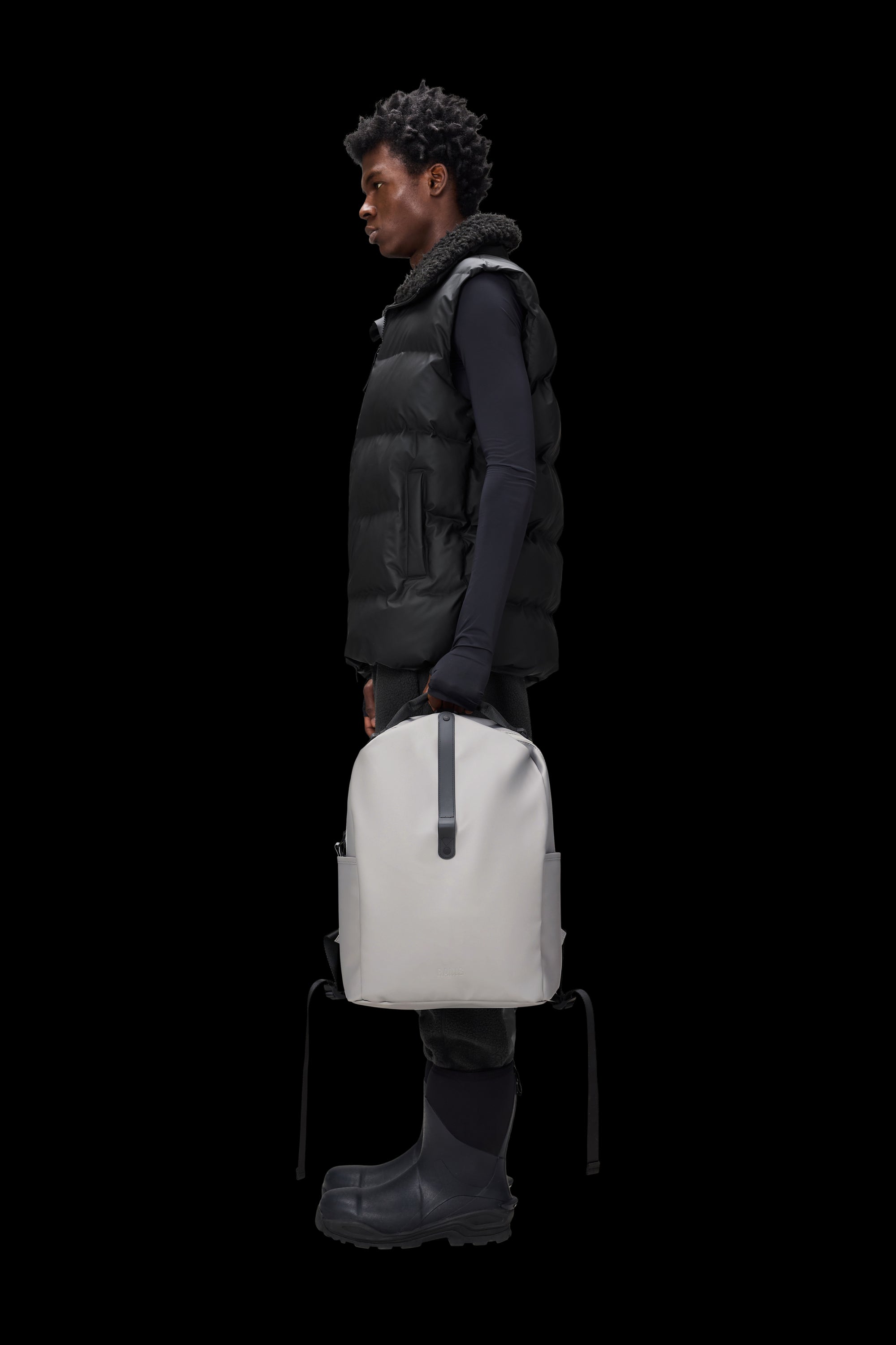 Il Clip Front Backpack è realizzato con l'iconico tessuto PU di Rains, progettato per garantire resistenza al trasporto, durata e morbidezza al tatto.
