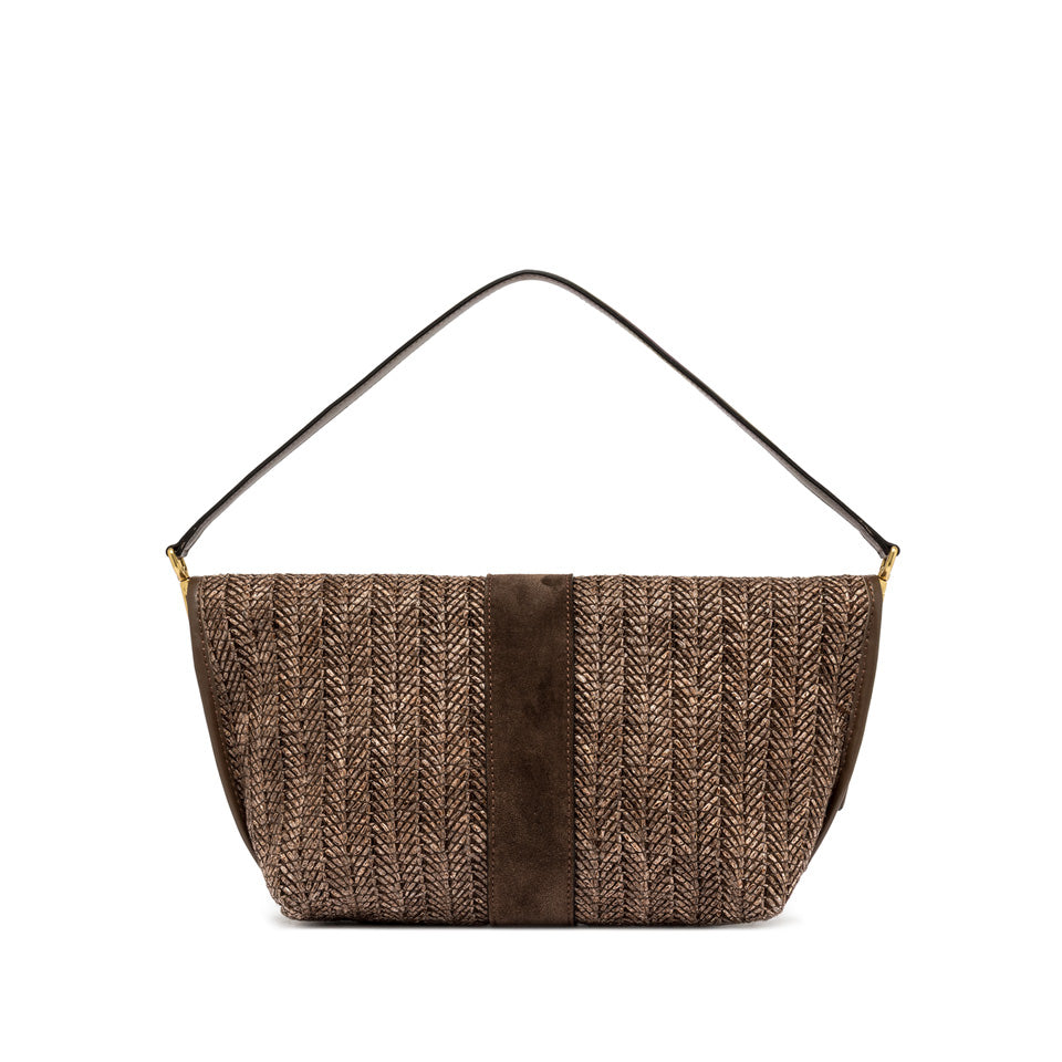Dettaglio: Marigold è un’icona di stile firmata Gianni Chiarini Firenze. Capiente e funzionale, si distingue per la sua elegante silhouette . Realizzata in rafia intrecciata. Dotata di tracolla removibile