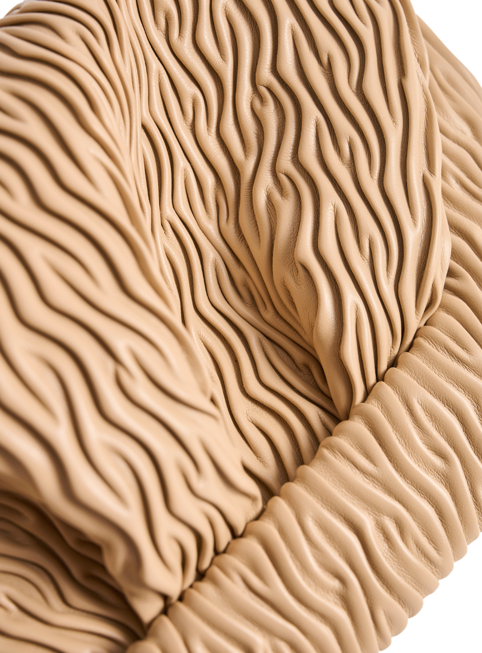 Dettaglio: Lo sviluppo di questo materiale non comporta alcun tipo di sofferenza animale. Il PU vegano è un'alternativa ecologica al PVC poiché non richiede gli stessi plastificanti chimici per essere prodotto ed è più biodegradabile nel tempo.